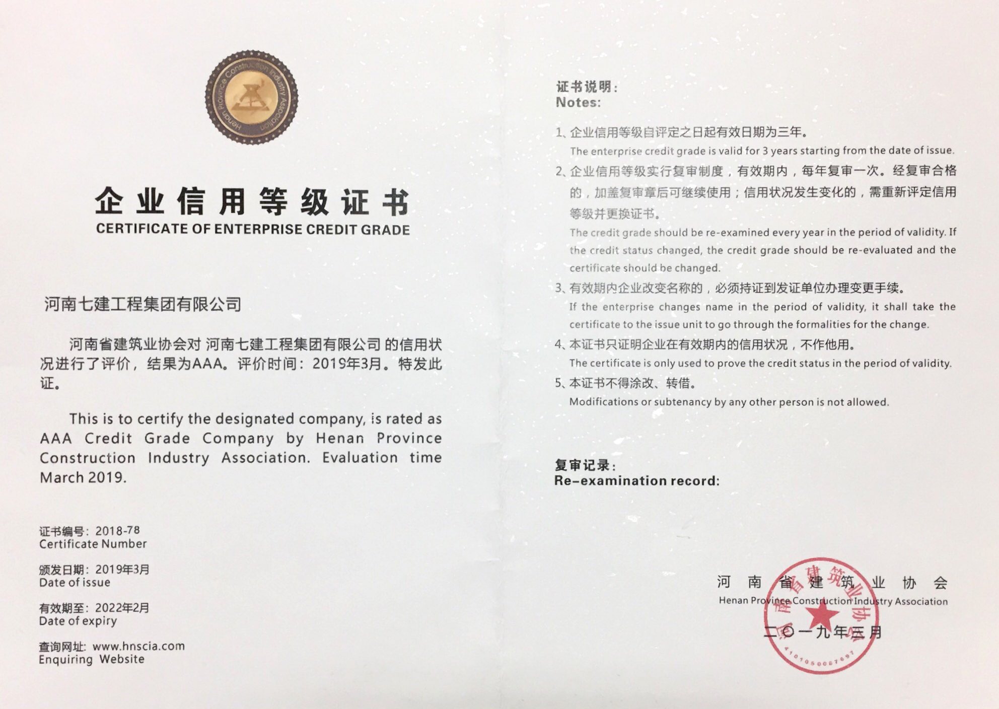 2018年度河南省建筑業(yè)AAA級(jí)