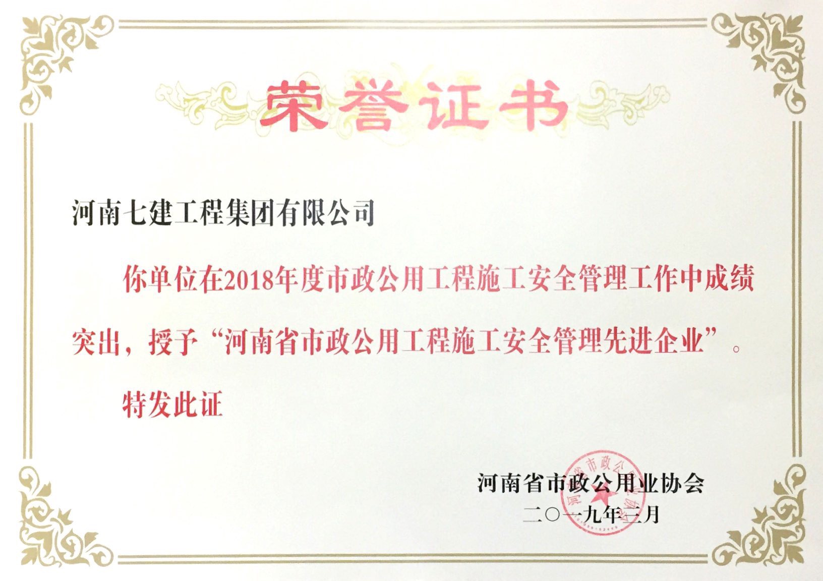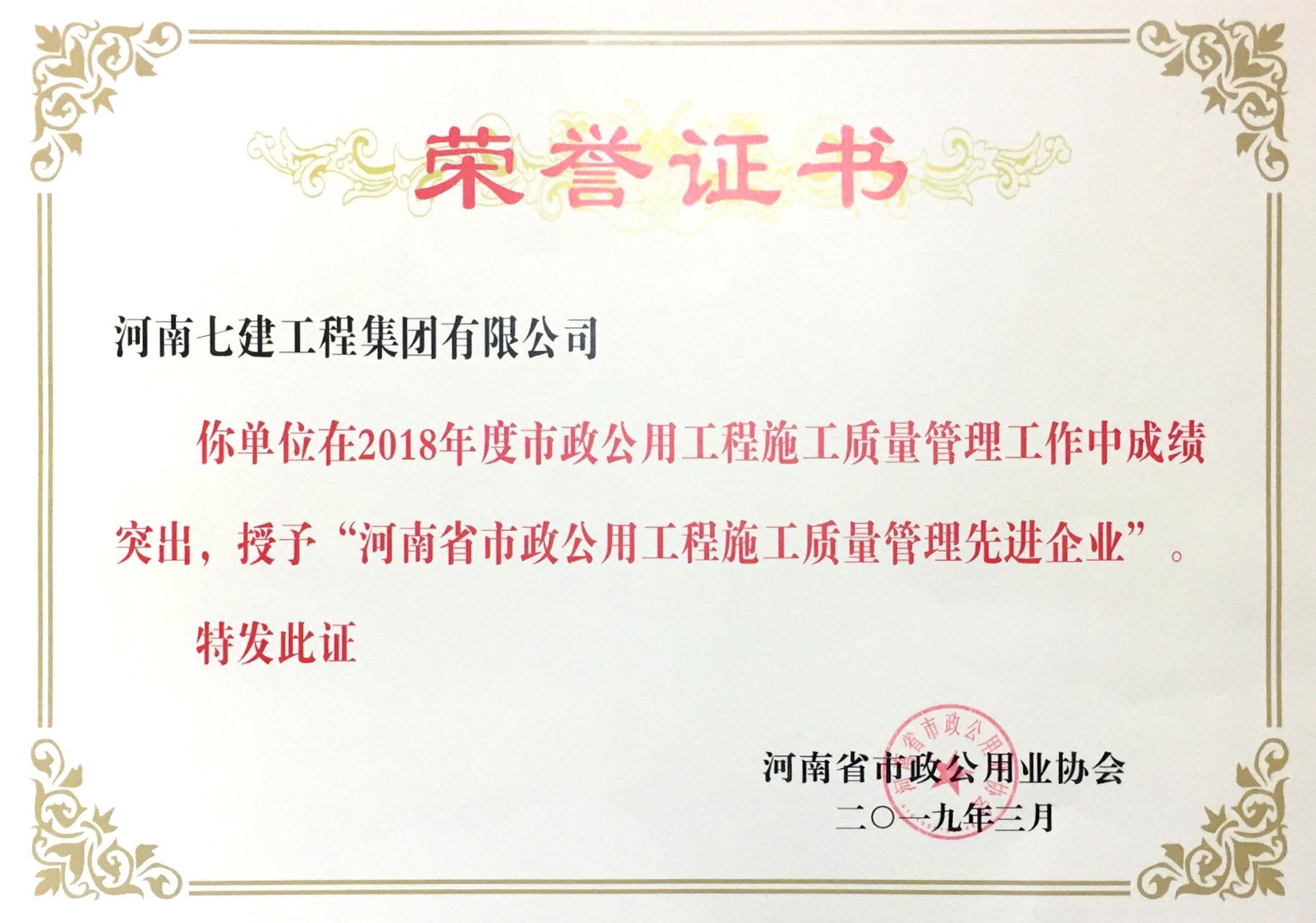 河南七建工程集團(tuán)有限公司被評(píng)為2
