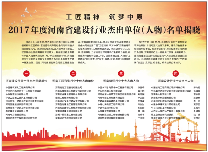 近日,《河南日?qǐng)?bào)》公布了第二屆“工匠精神筑夢(mèng)中原”河南省建設(shè)行業(yè)杰出單位、人物評(píng)選結(jié)果,集團(tuán)公司董事長(zhǎng)李方波獲得了 “河南省建設(shè)行業(yè)十大杰出人物”稱(chēng)號(hào)。