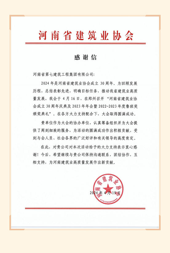 一封來自省建協的感謝信